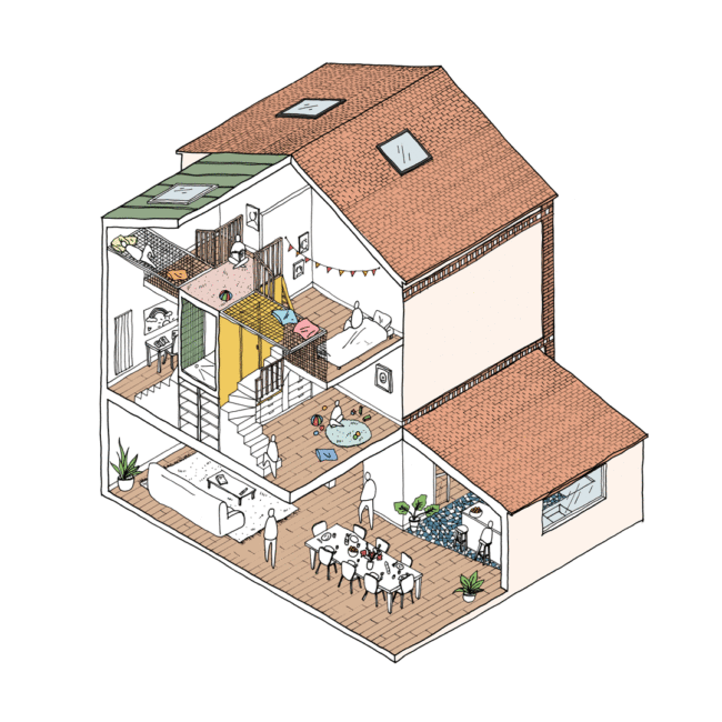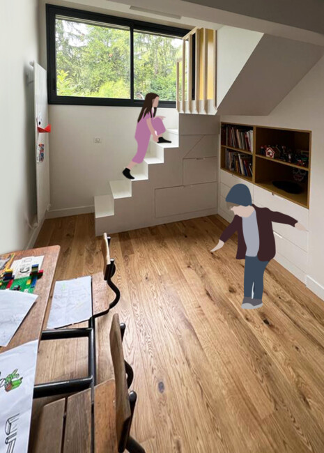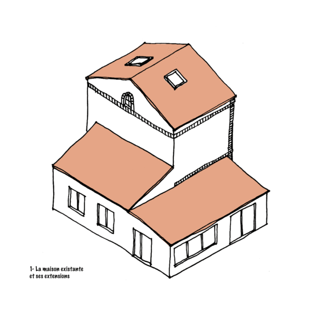Notre concept : transformer profondément l'organisation de la maison existante et créer une extension/surélévation pensée comme une véritable tour de jeux pour les enfants.