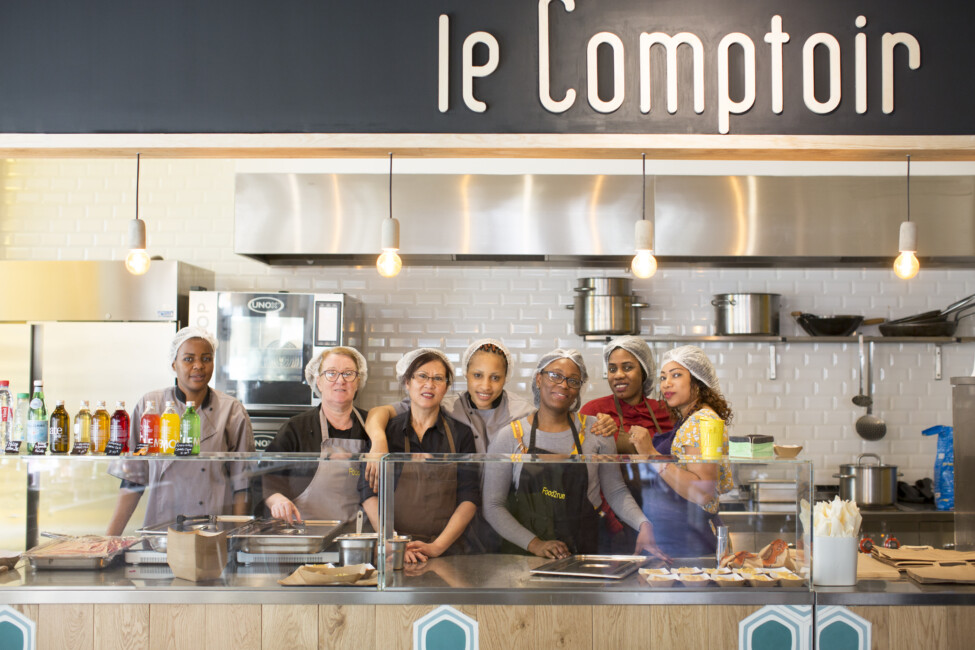 L'association Food 2 Rue, soutenue par la Mairie du 14e, nous contacte en 2017 pour réaliser l'aménagement d'un local mis à disposition par la RIVP. Il s'agit d'un plateau vide, dans lequel nous devons concevoir le lieu de développement de leur coopérative de femmes en réinsertion futures cuisinières.