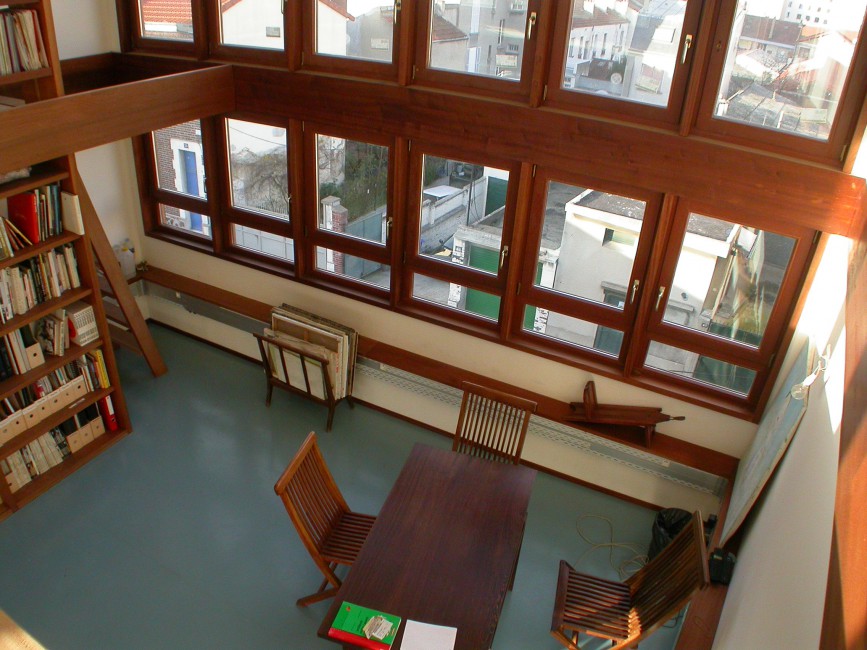 - En 1990, côté jardin par la réalisation d’une salle de dessin en rez-de-jardin et une salle de réunion au rez-de-chaussée ; le tout en structure bois Kertopuu.